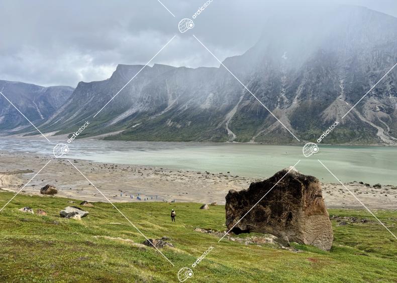 Sailing up Panniqtuuq Fiord until the water is too shallow to continue. The milky color of the water indicates that it is coming from the melting of glaciers. At the end of the Fiord is the boundary of the Auyuittuq National Park on Baffin Island, Nunavut.